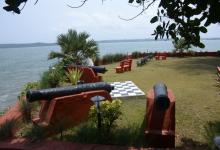 Down the estate, on the Western side, just 3 minutes' drive from the Raj Bhavan through the forests, is a spot, named as 'Cannon Point'. A suitable small park, pathways and lighting have been provided at this scenic spot. Two old cannons, which were located and lifted from the shore waters, are placed on pedestals here. This place offers a beautiful view of the sunset and the ever-surging tides of the Arabian sea lustily lashing at the shore.